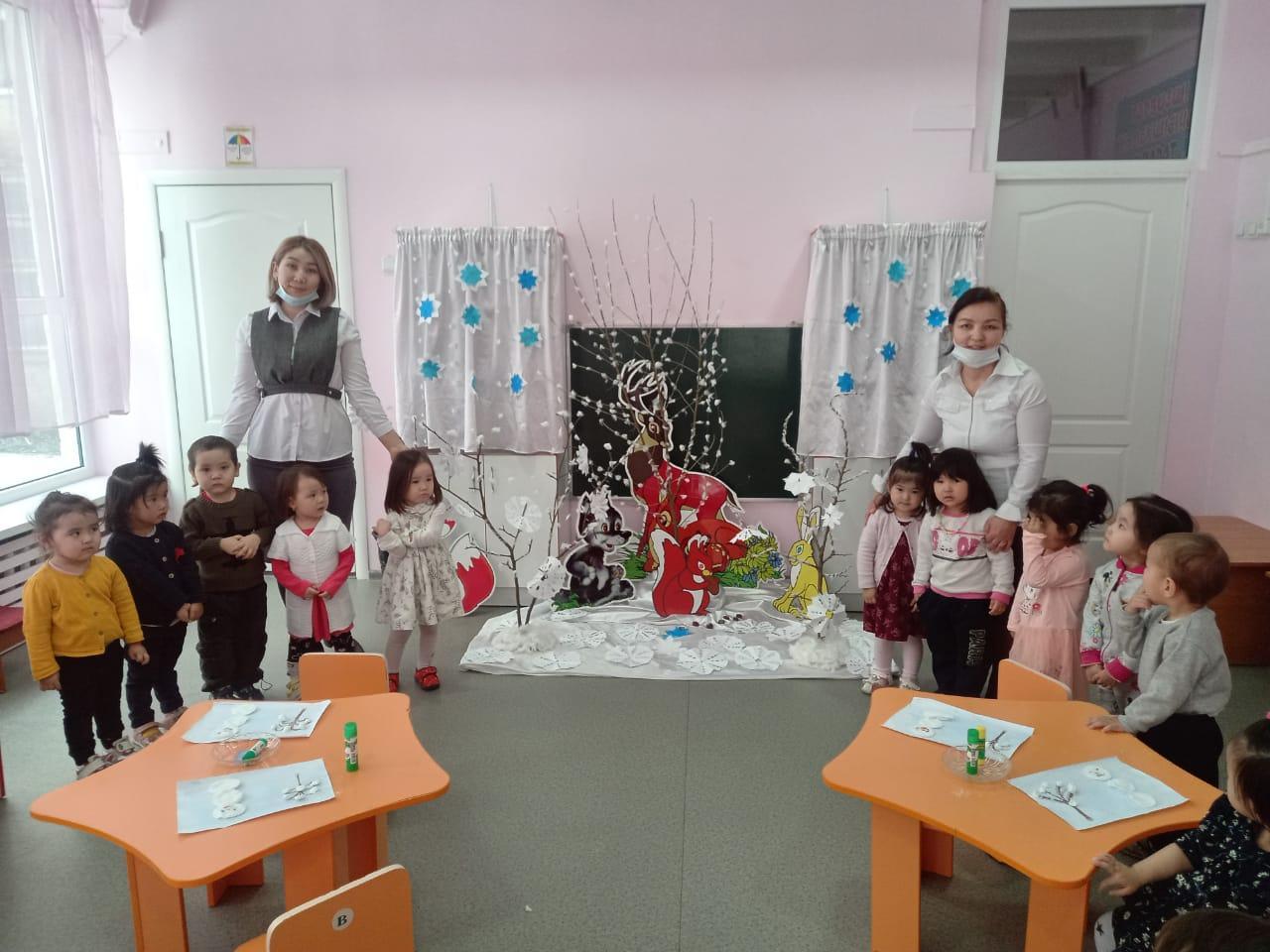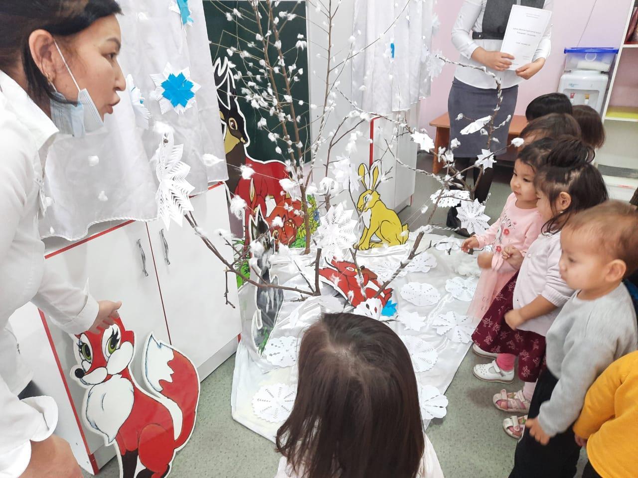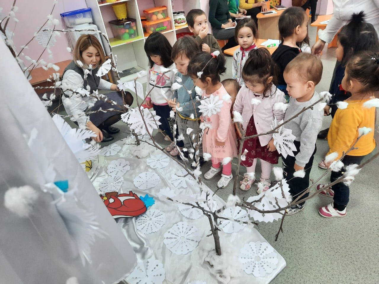 "Ақ ұлпа қар" Мақсаты: Балаларға қыс мезгілі туралы түсінік беру. Қардың қасиеттерімен таныстыру. Ақ ұлпа қар туралы түсініктерін кеңейту. тіл байлықтарын, есте сақтау, сөздік қорын молайту, ойлау қабілеттерін дамыту. Балаларды тазалыққа, ұйымшылдыққа тәрбиелеу.