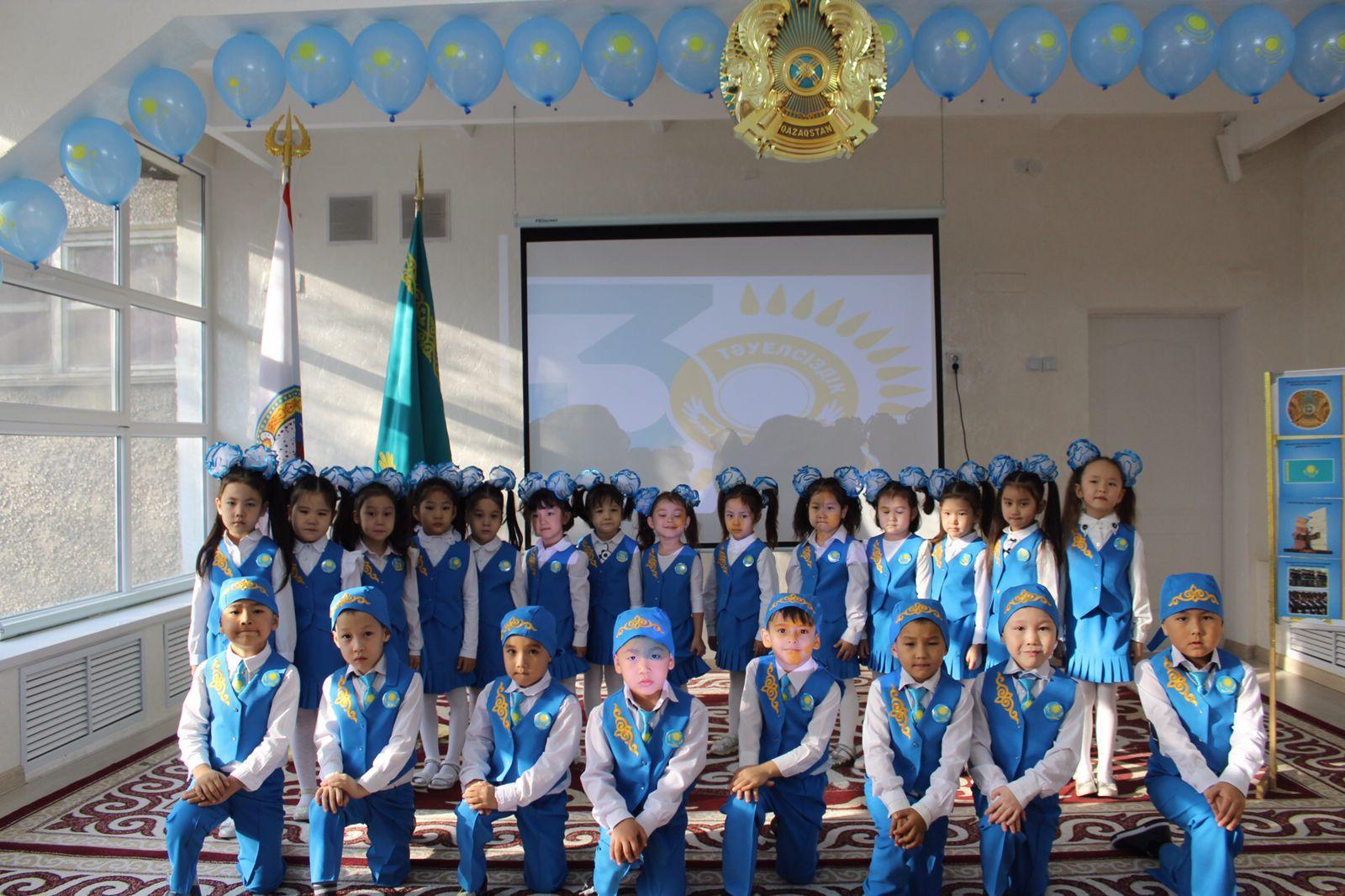 Қазақстан Республикасының Тәуелсіздігінің 30 жылдығына орай №30 бөбекжай-балабақшасында "Тәуелсіздік-ел тірегі" тақырыбында ашық оқу қызметі өтті. Тәрбиеші Базарбаева Жансая мен Хусаинова Маржанның жетекшілігімен өткізілген оқу қызметінің негізгі мақсаты бүлдіршіндерге мемлекетіміз, еліміз туралы түсініктер беру, өз Отанын сүюге, халқымыздың әдет – ғұрпы, салт – дәстүрін сақтап, әрі қарай жалғастыруға баулу болып табылады.