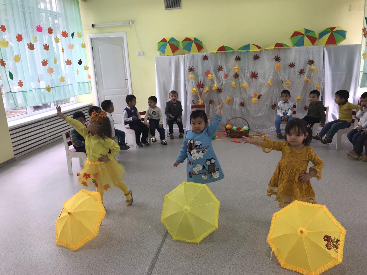 "Құлыншақ" тобы балаларының алтын күз ертеңгілігінен көрініс. Тақырыбы: Сиқырланған, Алтын күз! Мақсаты: Күз мезгілінің ерекшеліктері туралы, білімдерін бекіту. Табиғат әсемділігін эстетикалық түрде сезіну. Табиғатқа сүйіспеншілігін тәрбиелеу, қорғау, аялау сезімдерін қалыптастыру.