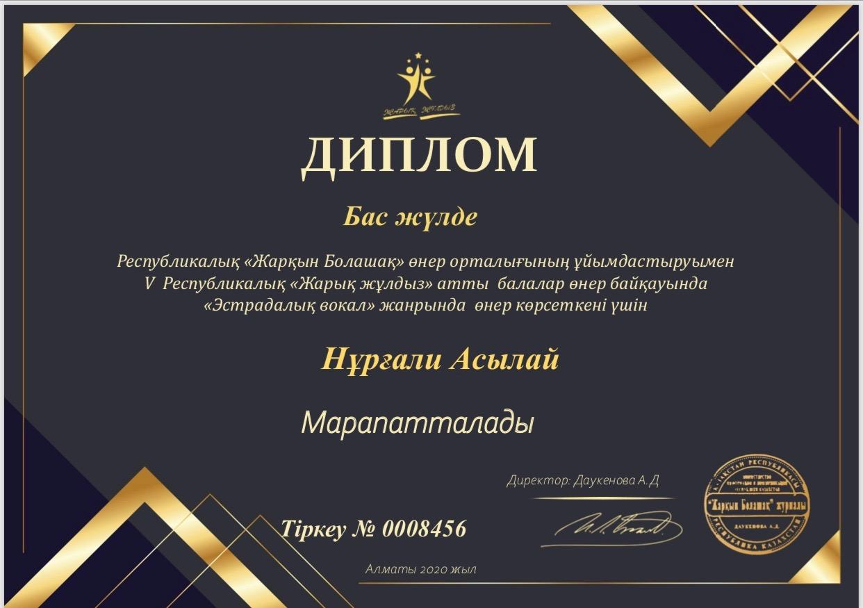 02 желтоқсан 2020 0 1 2 3 4 5 Балалар жетістіктері Республикалық "Жарқын Болашақ" өнер орталығының ұйымдастырумен V Республикалық "Жарық жұлдыз" атты балалар өнер байқауында тәрбиеленушіміз Нұрғали Асылай "Эстрадалық вокал" жанрында Бас жүлде иеленді.