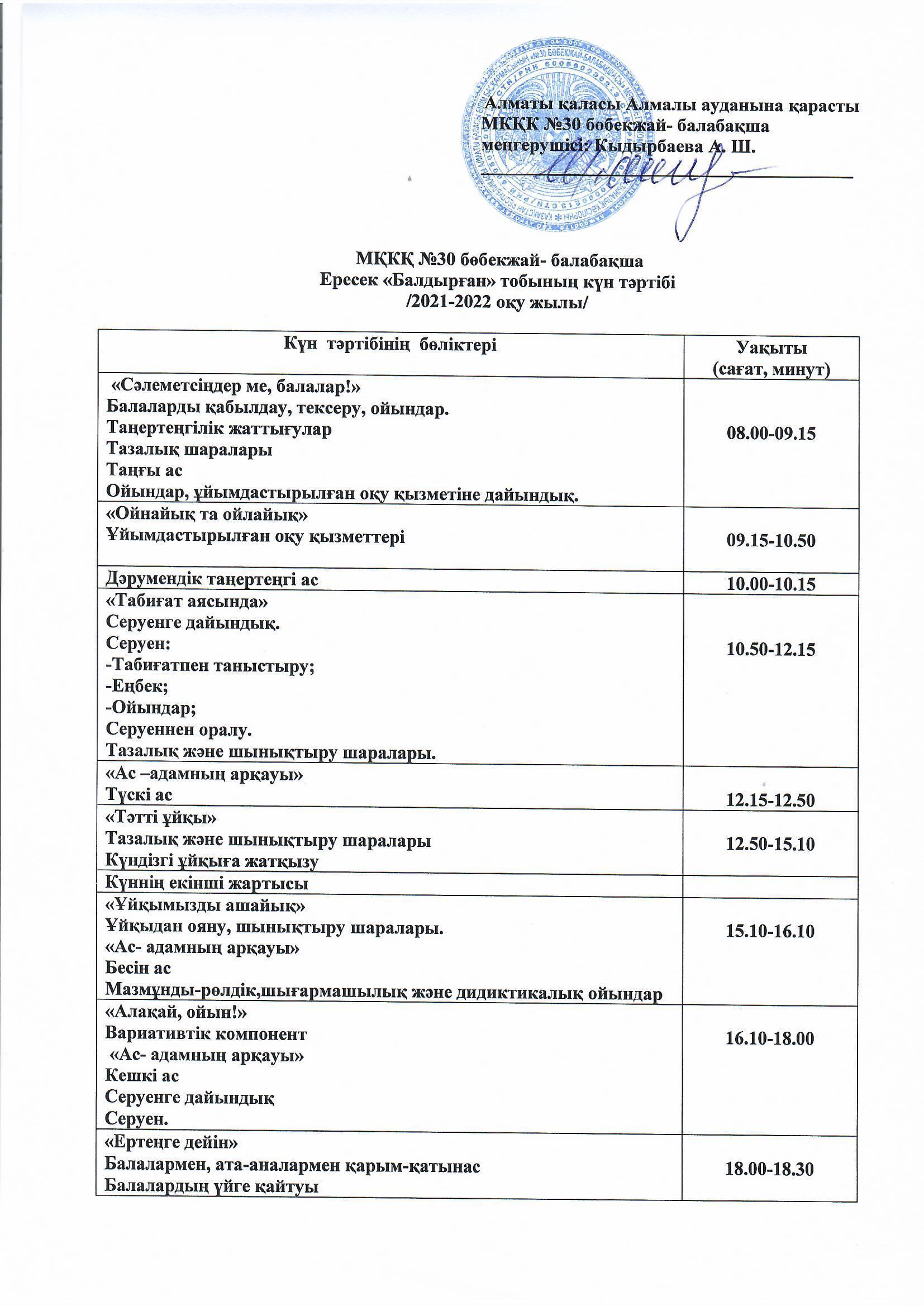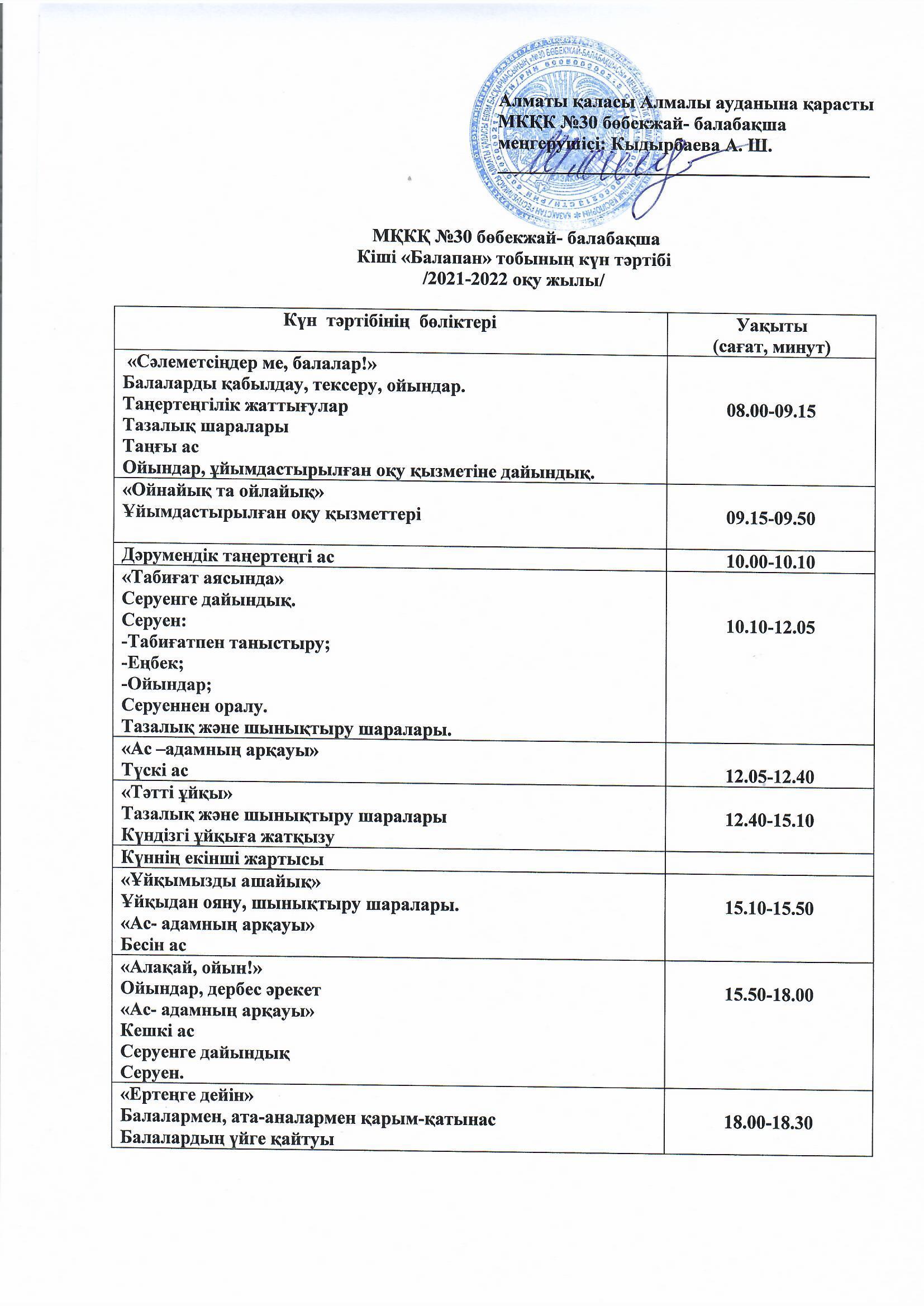 2021-2022 оқу жылы күн тәртібі » КГКП "Ясли сад №30". мемлекеттік балабақшасы