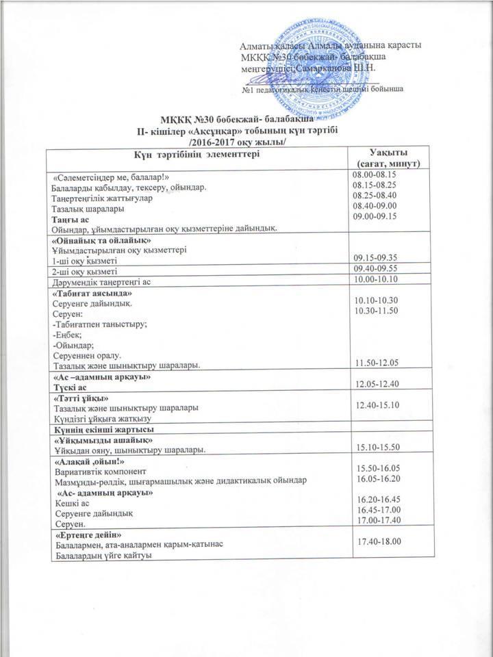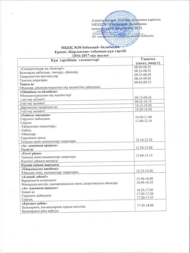2016-2017 оқу жылы күн тәртібі » КГКП "Ясли сад №30". мемлекеттік балабақшасы