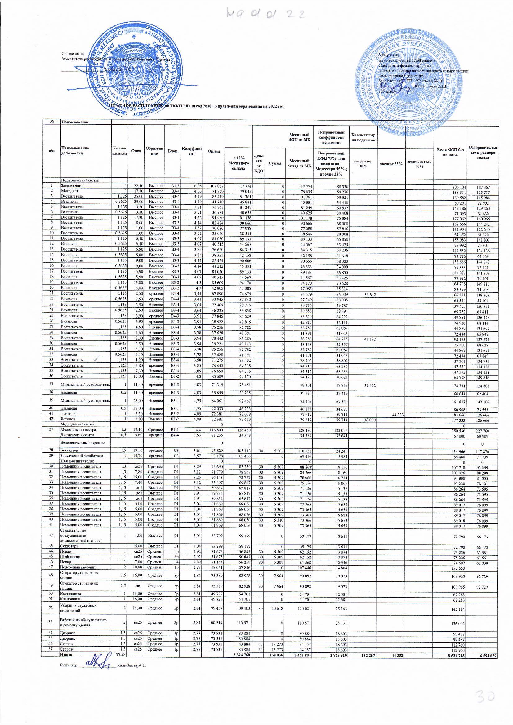 Штаттық кесте » КГКП "Ясли сад №30". мемлекеттік балабақшасы