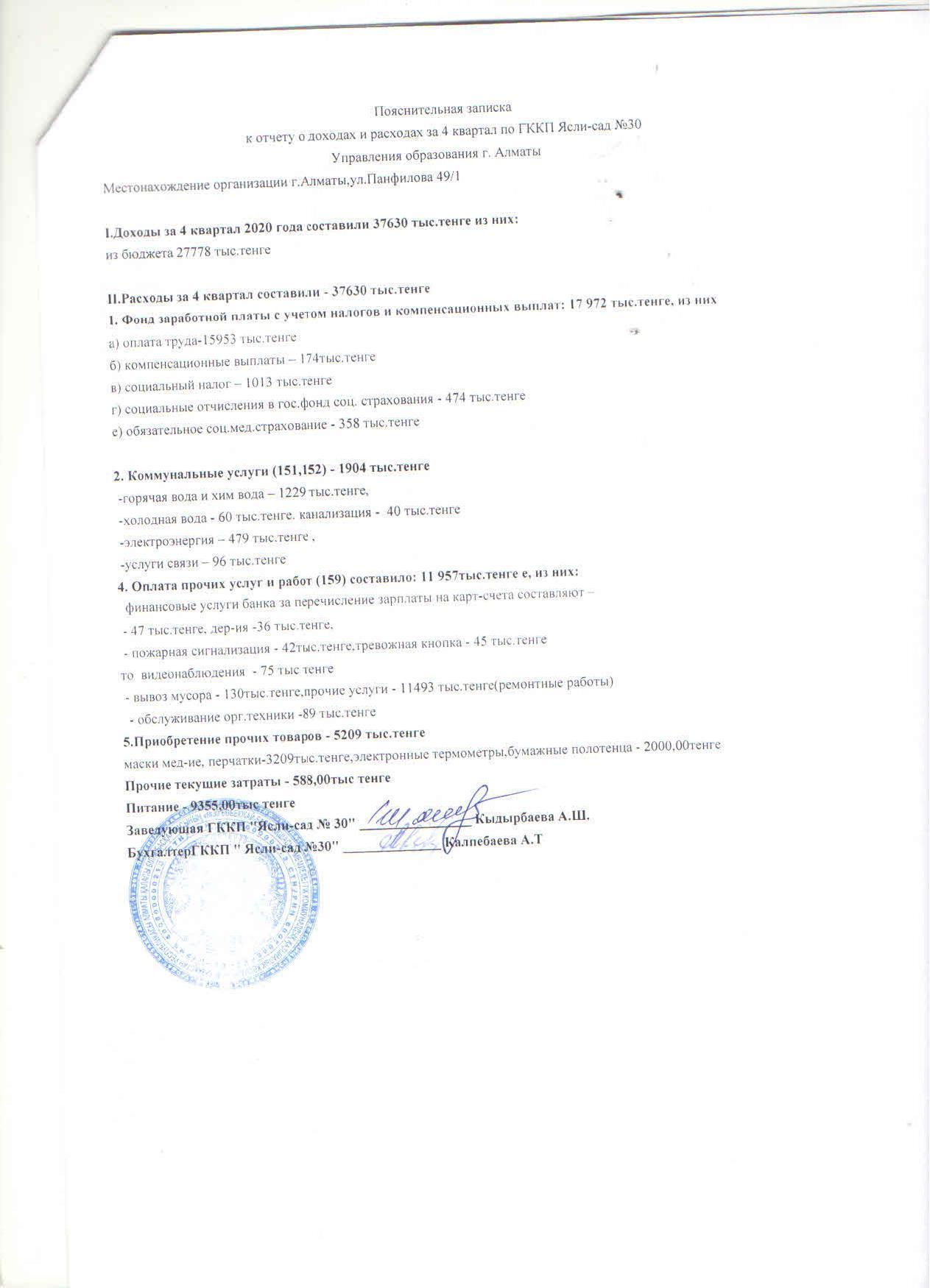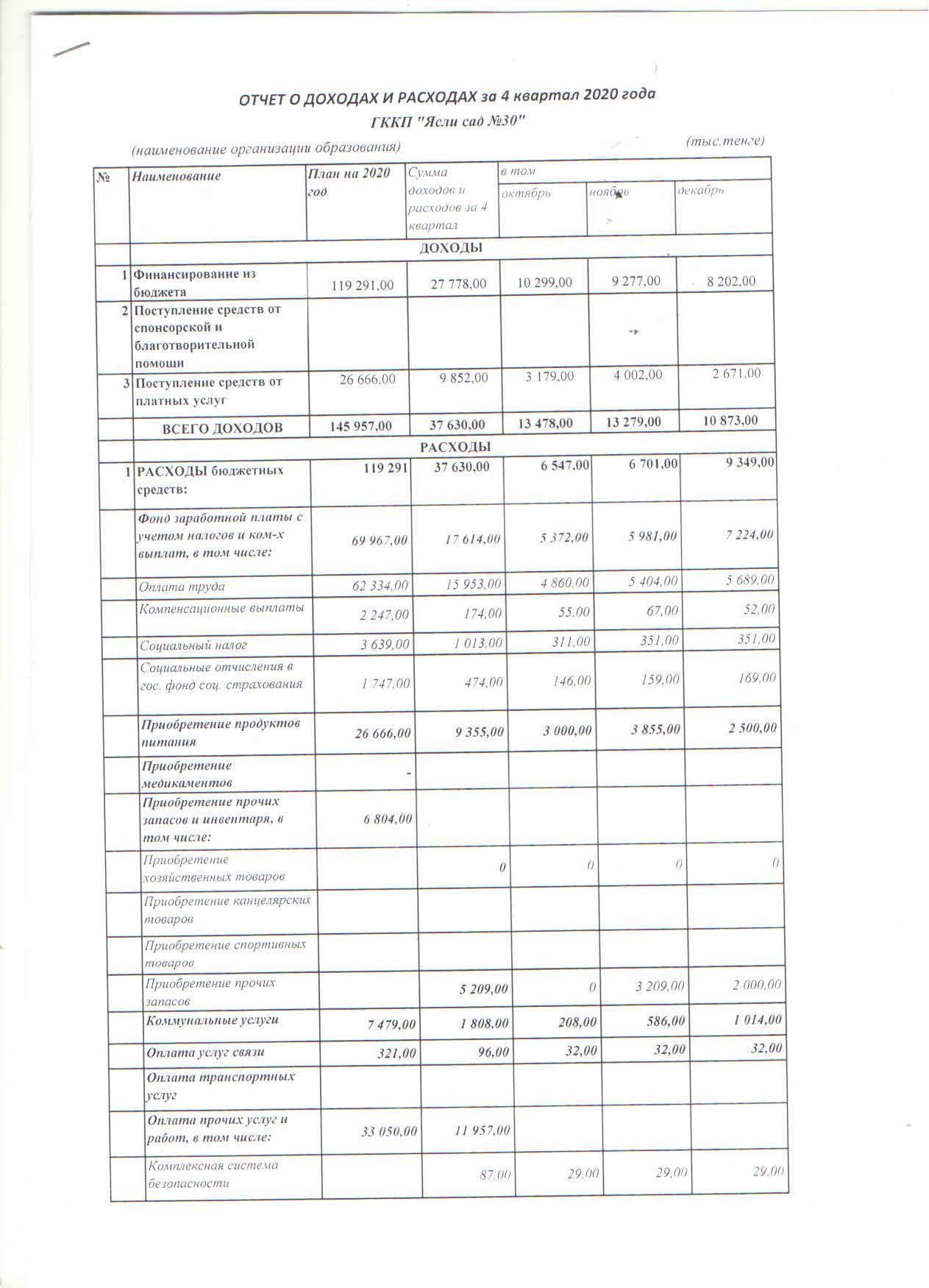 Отчет о доходах и расходах за 4 кв 2020 » КГКП "Ясли сад №30". мемлекеттік балабақшасы