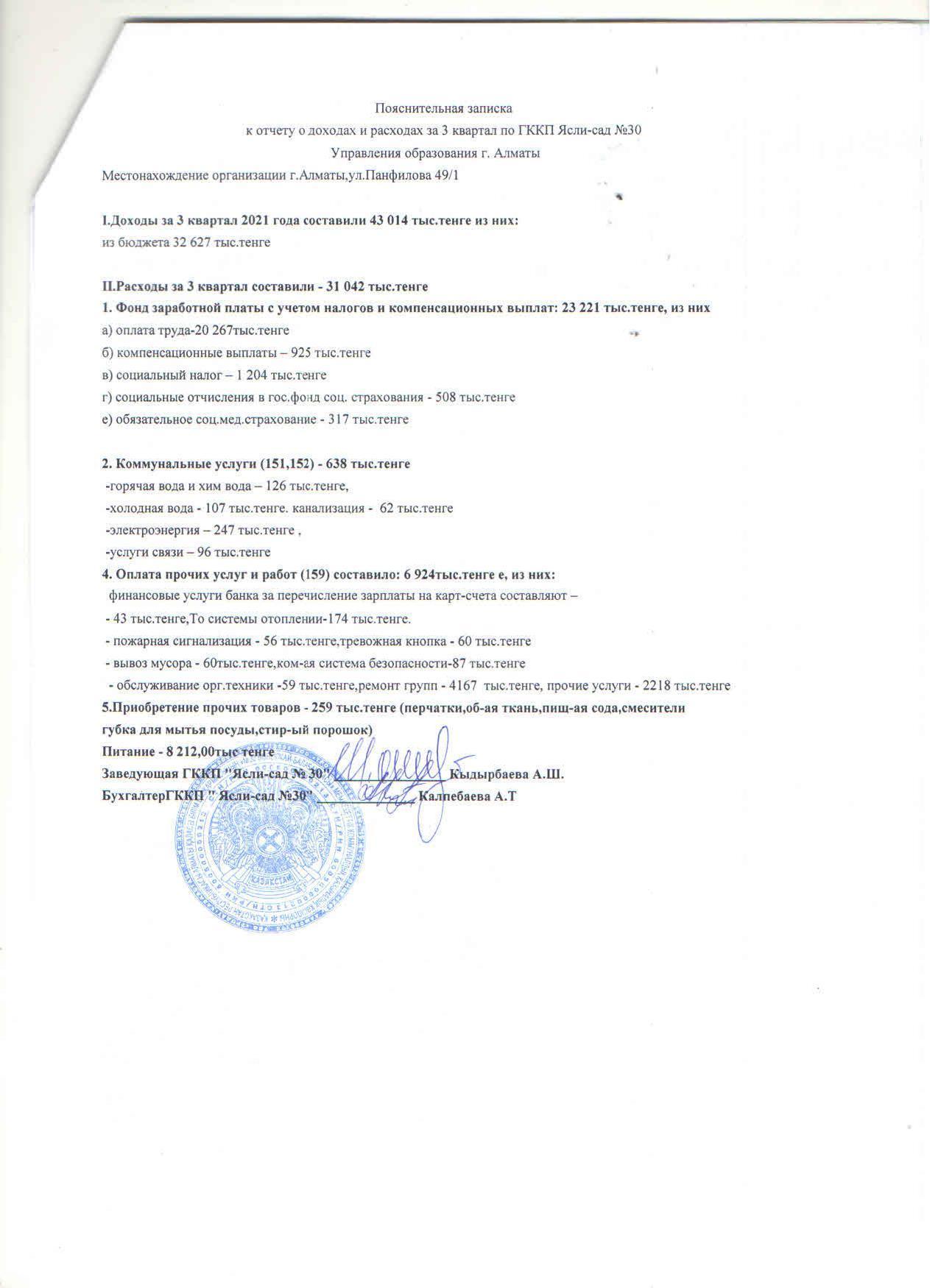 Отчет о доходах и расходах за 3 кв 2021 » КГКП "Ясли сад №30". мемлекеттік балабақшасы