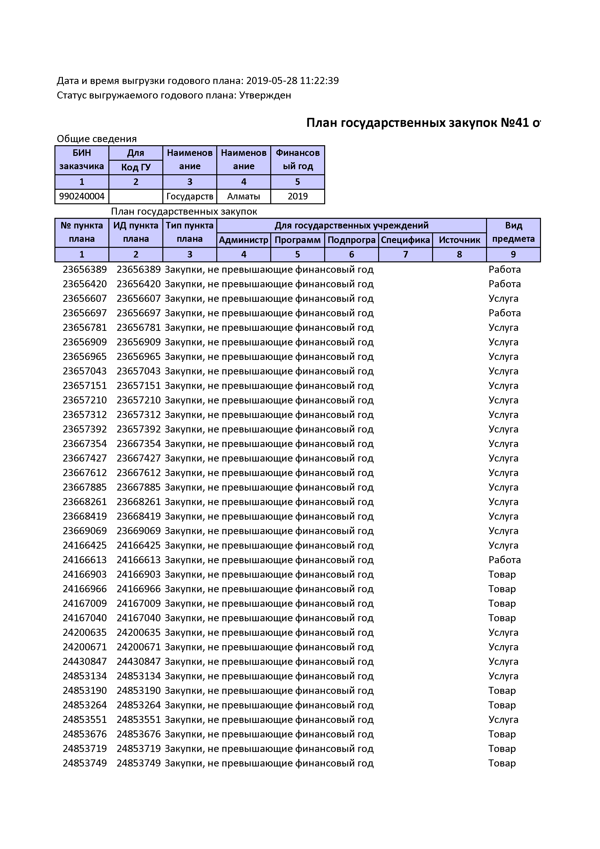 План государственных закупок