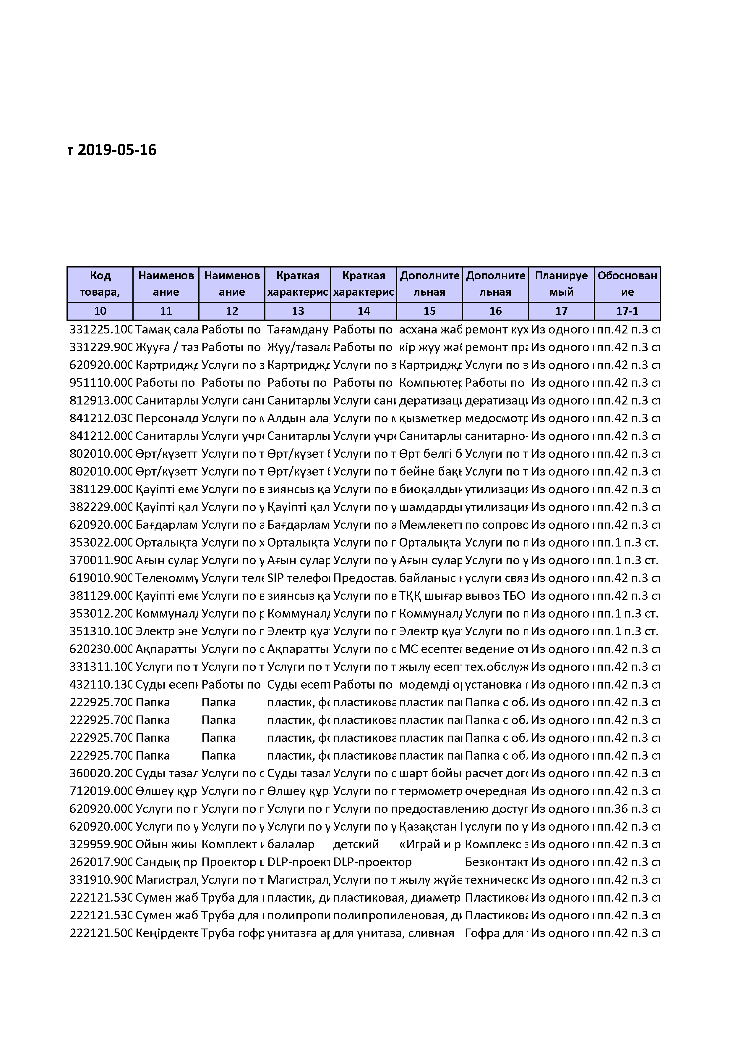 План государственных закупок » КГКП "Ясли сад №30". мемлекеттік балабақшасы