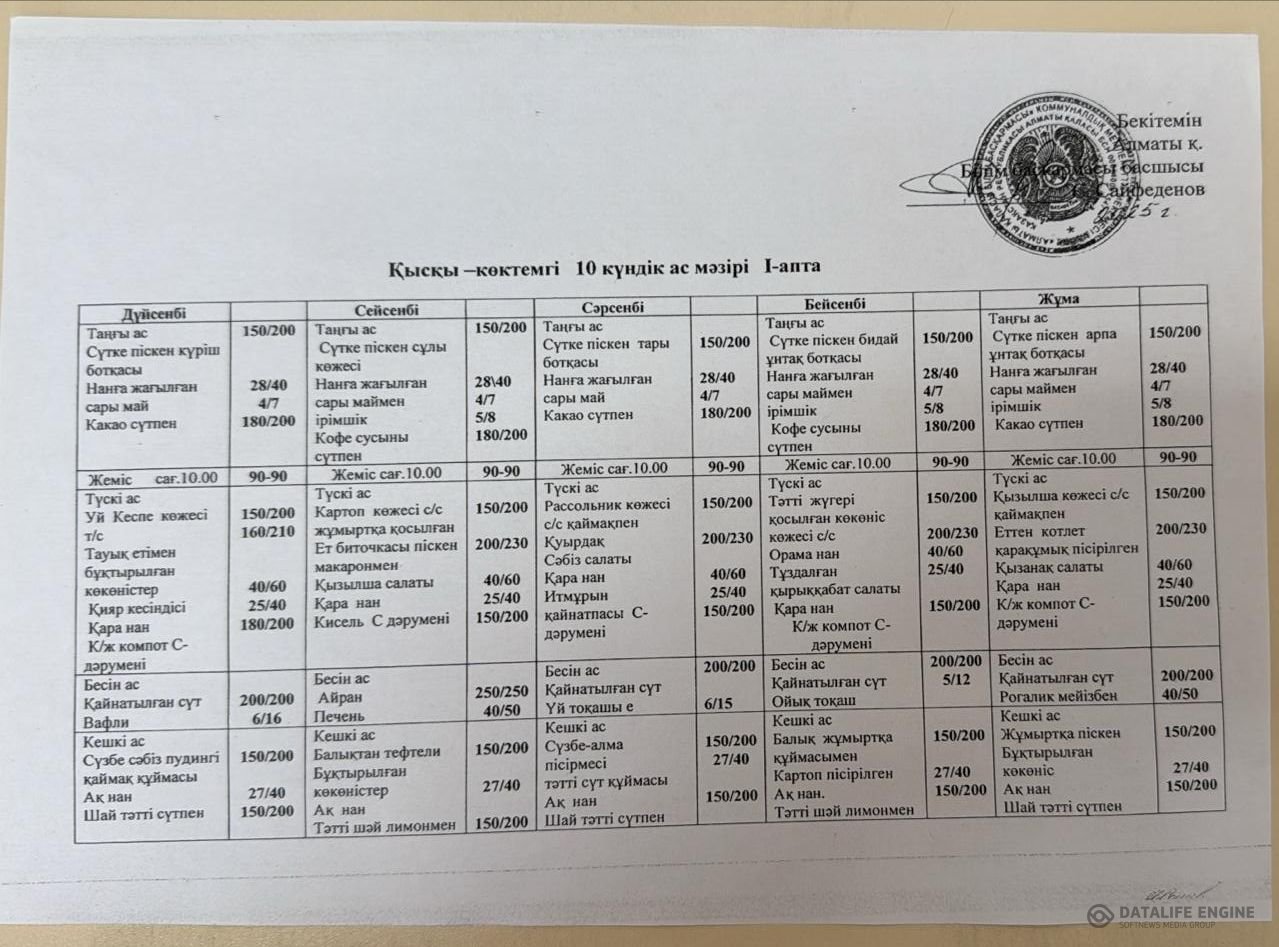07 қыркүйек 2021 10 күндік ас мәзірі